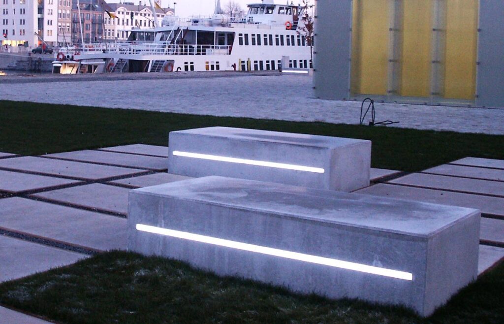 3. Cantilevered Concrete Bench with LED Underglow